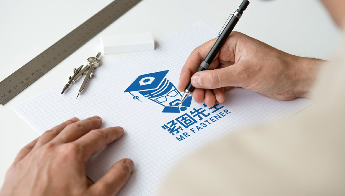緊固先生從品牌名上比較親切,賦予產品人性化,因此設計師采用了人性化的設計理念,LOGO設計出一顆卡通螺絲博士的形象。博士代表著專業,全面,正如品牌緊固先生的產品十分全面,在行業內很專業同時卡通的形象,更加親切,讓冰冷的緊固產品有了活力,拉近消費者與產品的距離。同時設計師很巧妙的將博士的帽子融入產品螺絲的形狀,看著順其自然,更加強調了產品的屬性。
