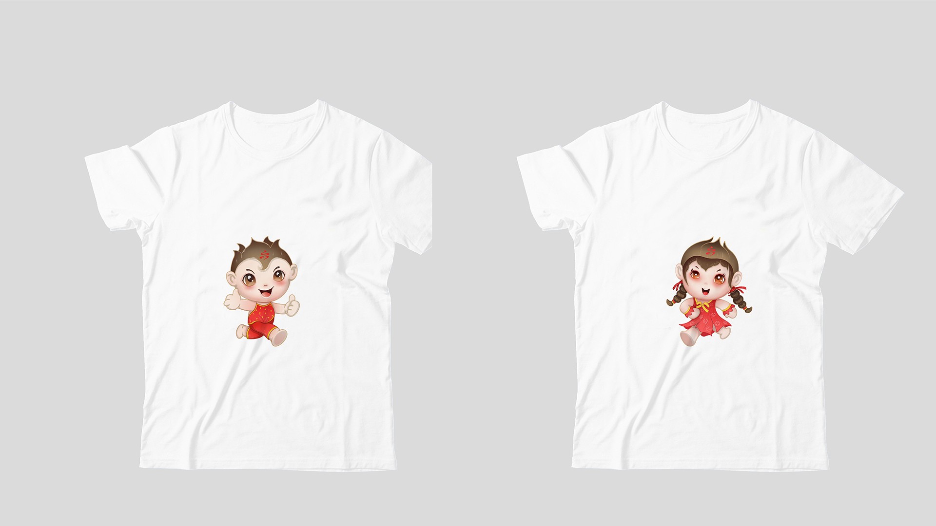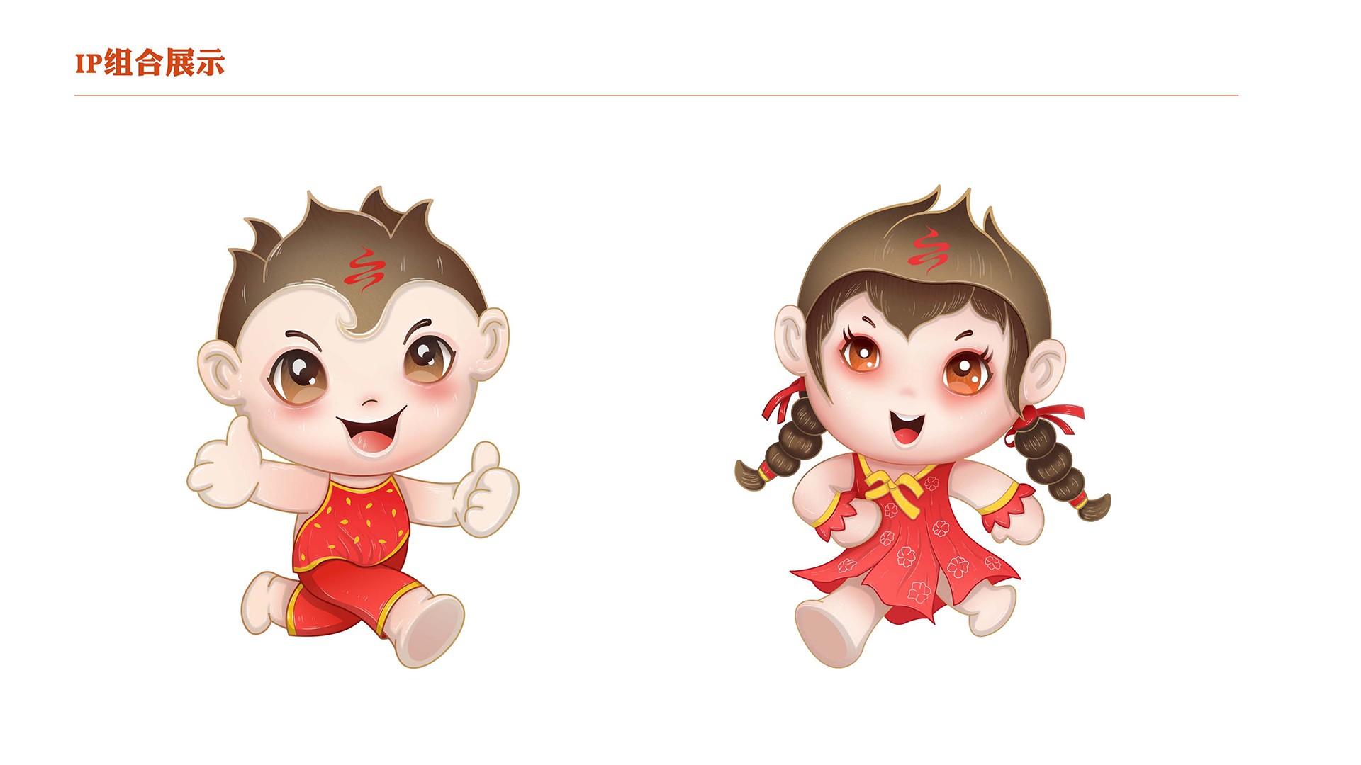 2、地域特征:從面貌出發(fā),為冷娃的填充緋紅的臉頰,凸顯高原地勢;并給男娃設(shè)計紅肚兜以體現(xiàn)西北特色。