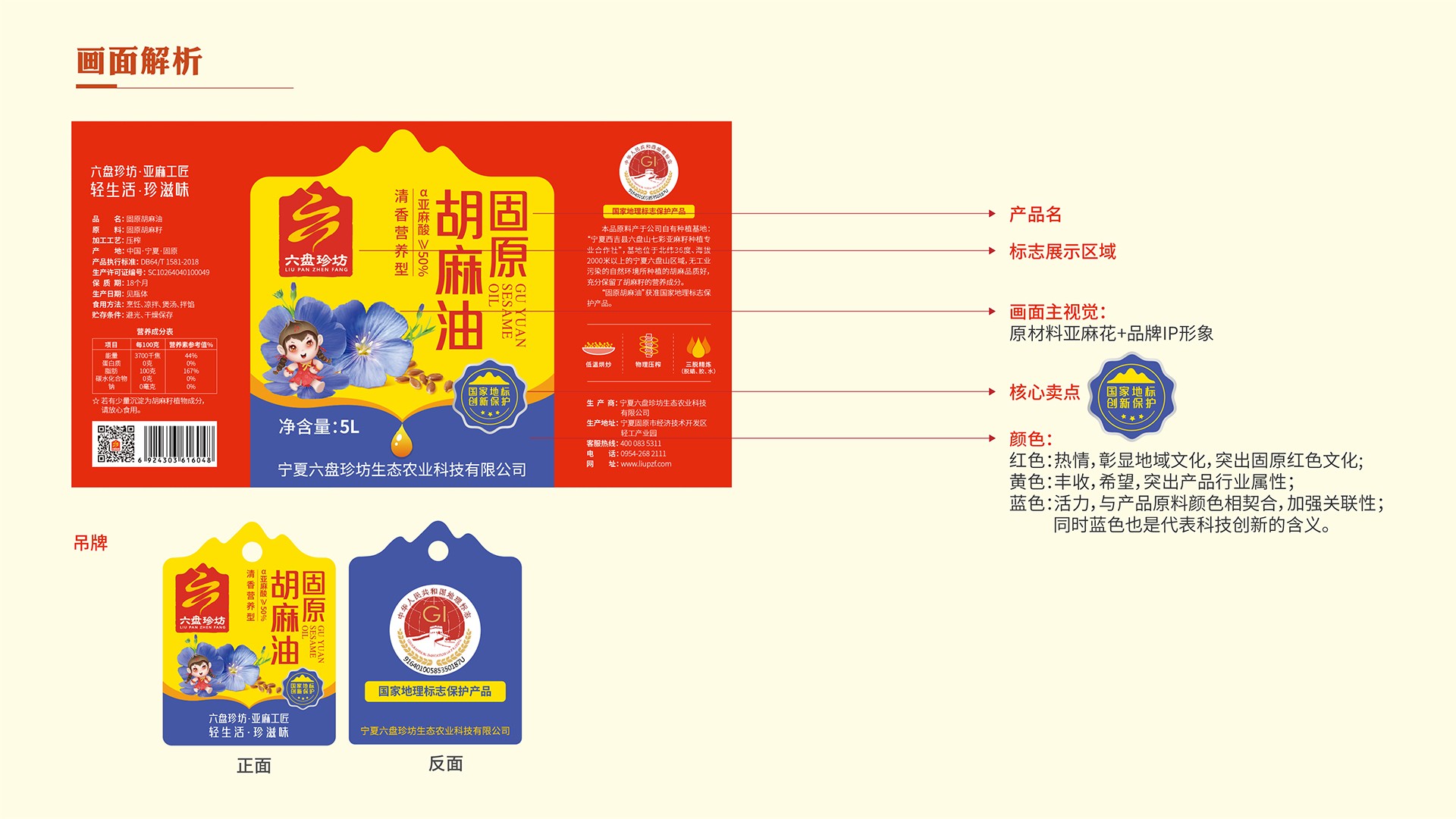 亞麻花生長在高寒冷涼的六盤山,結(jié)合氣候特征與六盤山的紅色文化,我們從冷、紅二字出發(fā)尋找六盤珍坊的形象代言人。冷靜的頭腦遇上紅色的熱情,一個生動的六盤山孩童形象躍然紙上,結(jié)合六盤珍坊的行業(yè)屬性、品牌調(diào)性與產(chǎn)品特性,賦予其完善的人格化色彩,取名“冷娃”,六盤珍坊的IP形象——冷娃誕生了!一個生動活潑的孩童將六盤珍坊與寧夏六盤山、亞麻籽油的產(chǎn)品屬性相連。