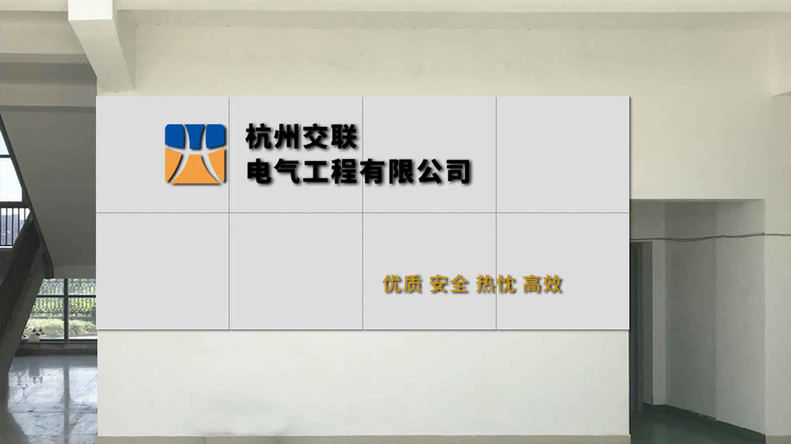 交聯(lián)電氣辦公環(huán)境改變,分為電氣和投資兩處辦公室,委托石特為他們做了簡潔的形象墻設(shè)計。