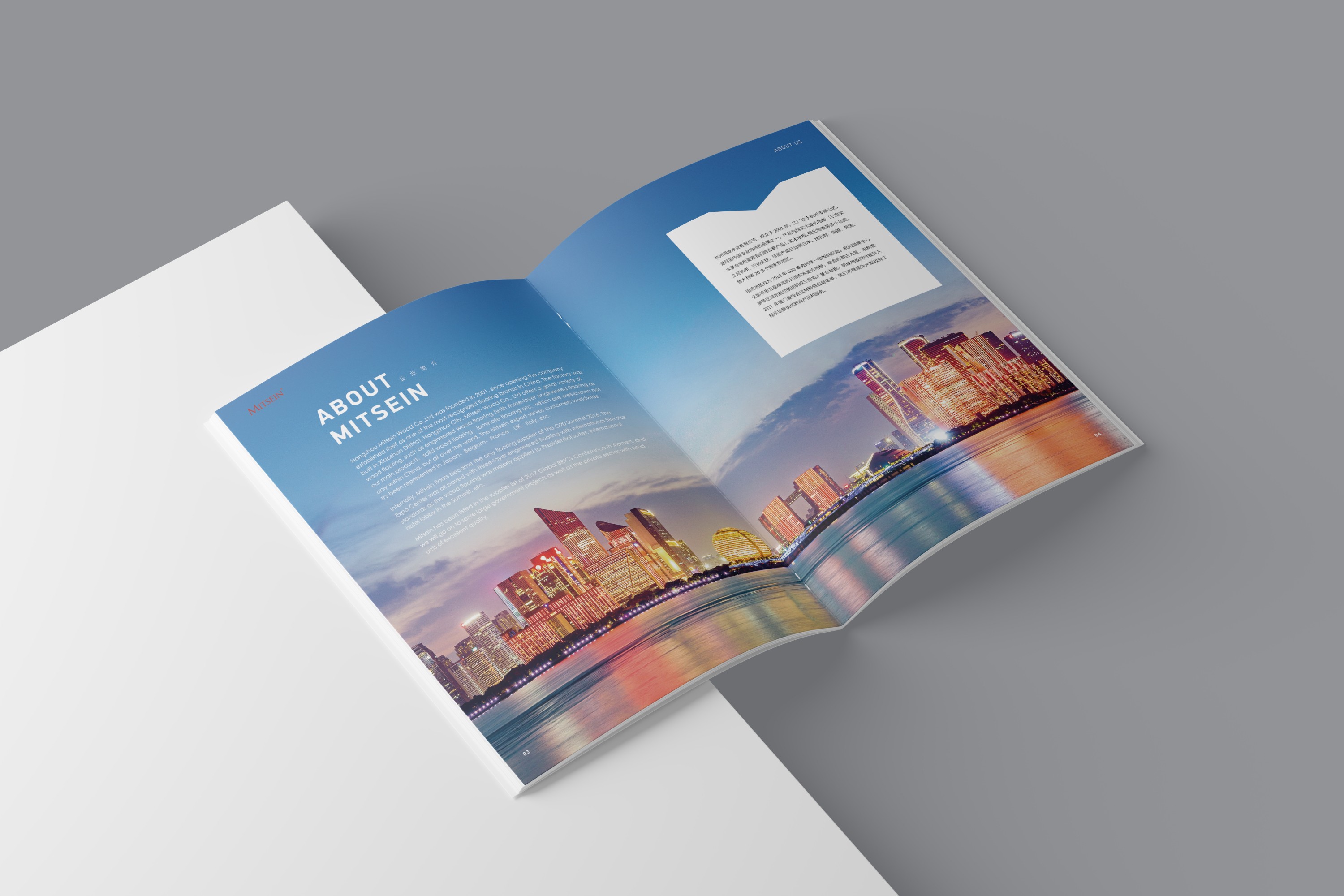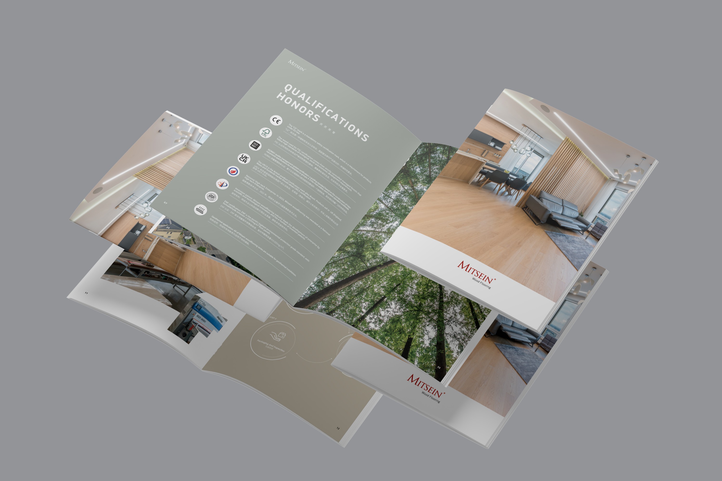淺木色與灰色為主要色彩,既展現出明成木業的企業行業屬性,又具備自然環保的特征,色調大體一致,極具整體感。