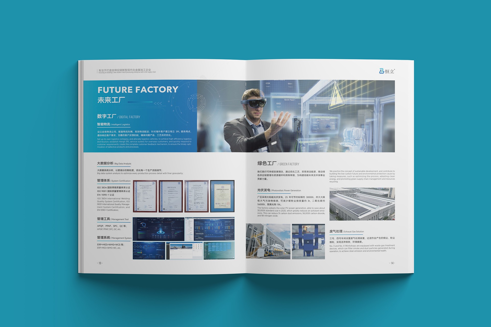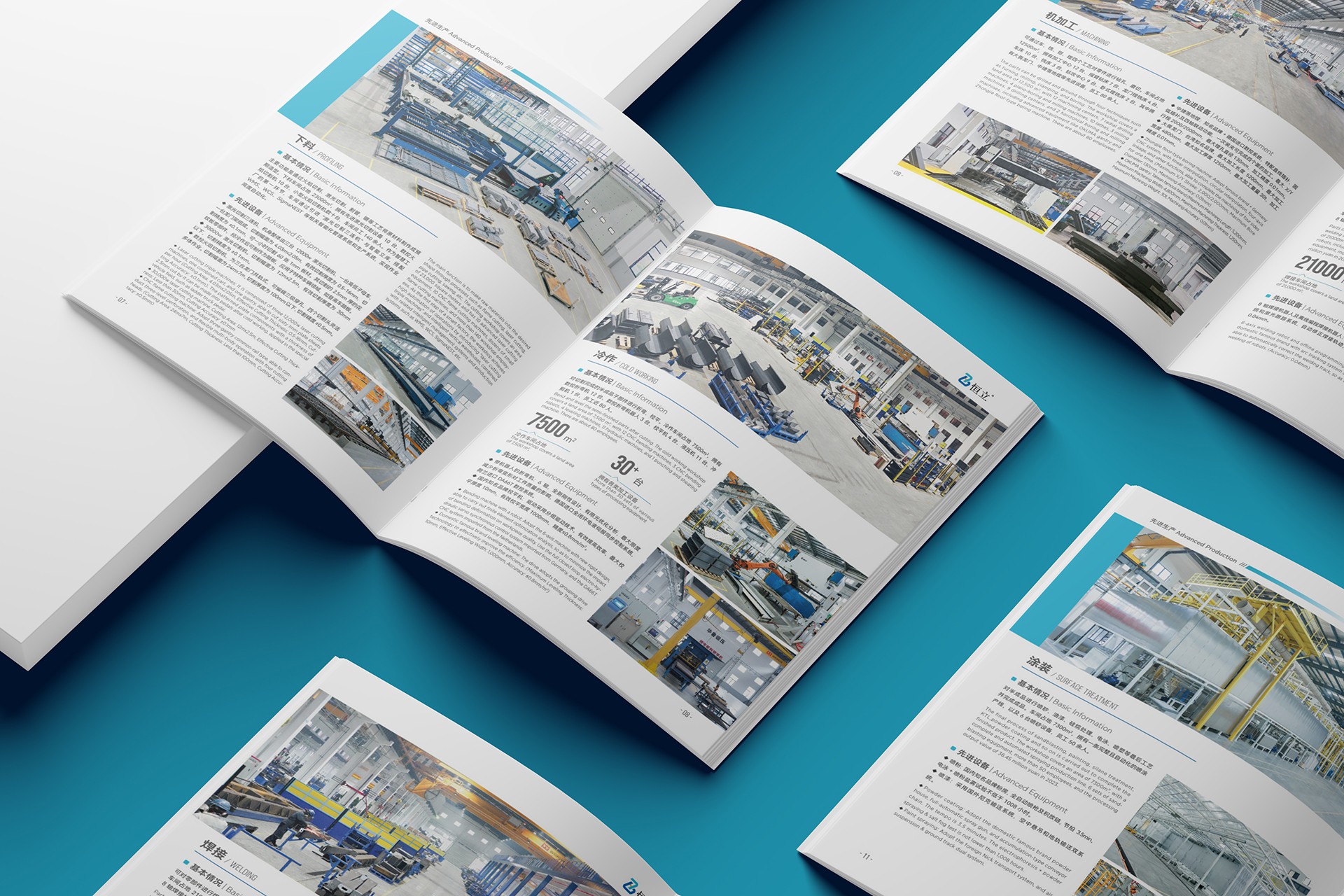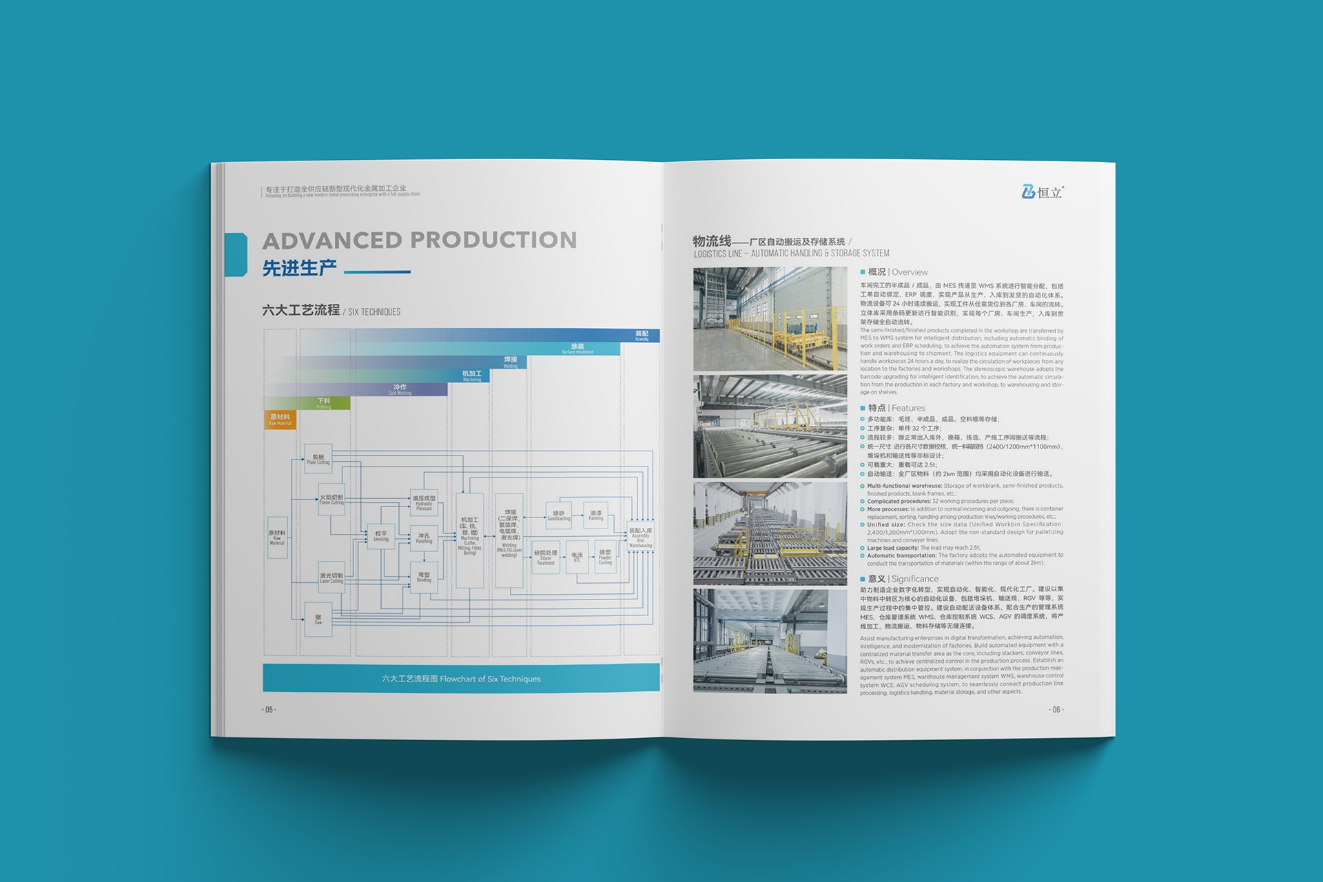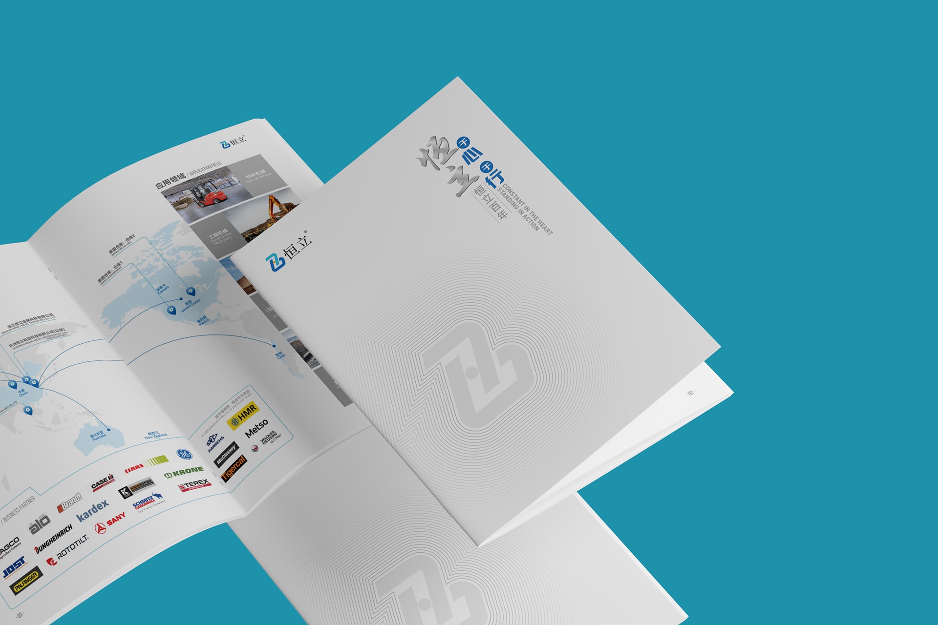 2. 內頁布局:通過模塊化設計清晰展示恒立的核心業務,包括原材料供應鏈、精密加工技術、表面處理工藝及物流配送體系,圖文并茂,一目了然。