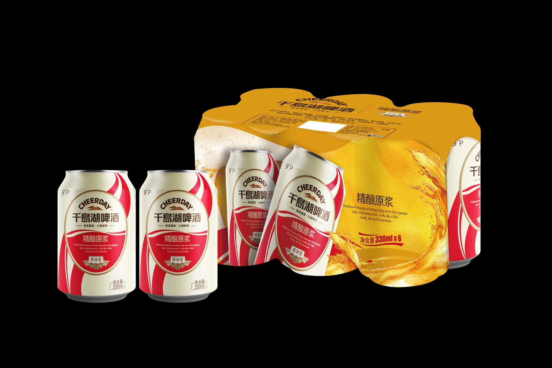 為能充分體現千島湖啤酒的特點及優勢,在包裝設計上,其主畫面在突出產品品名的同時,將千島湖、波浪等元素很好的進行融合;