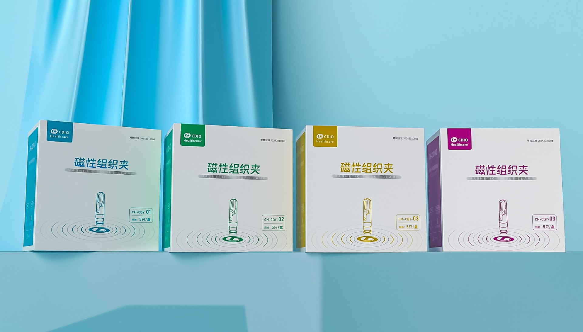 線性插畫:磁性組織夾以線性的方式呈現,以確保主要信息清晰可見。圖像的線條簡潔、現代,與醫療領域的創新精神相平應。