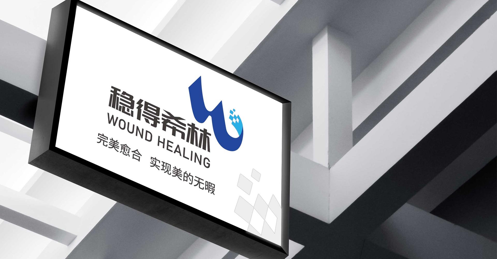 本標志以“W/H”品牌首字母作為主要圖形創意設計,結合兩個字母特點及行業屬性,融入“飄帶/基因鏈”等元素,抽象化組成完整的標志形態。飄帶:代表著溫暖/光明/真理/希望,象征著創新型企業的無限未來與希望圓點:采用高分子材料的點與面形成一個板塊,寓意由破碎達到完全統一表現傷口愈合的過程及研發產品的藥效。標志圖形及字體整體柔軟,符合品牌屬性的同時增加品牌親和力,能帶來良好的第一印象,充分顯示一個企業或組織的良好的社會組織形象。