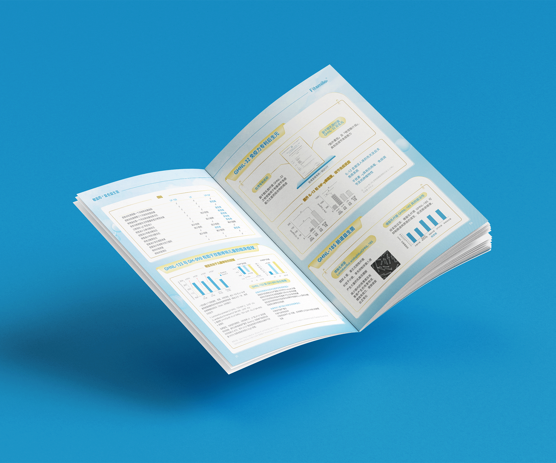 設計概念闡述: 本復合益生菌產品宣傳冊設計圍繞“健康腸道,活力生活”的核心主題展開,旨在通過視覺與內容的雙重引導,向消費者傳達產品對于改善腸道健康、提升整體生活質量的積極作用。設計風格融合了現代科技感與溫馨的自然元素,既體現了益生菌產品的科學背景,又貼近消費者的日常生活需求。