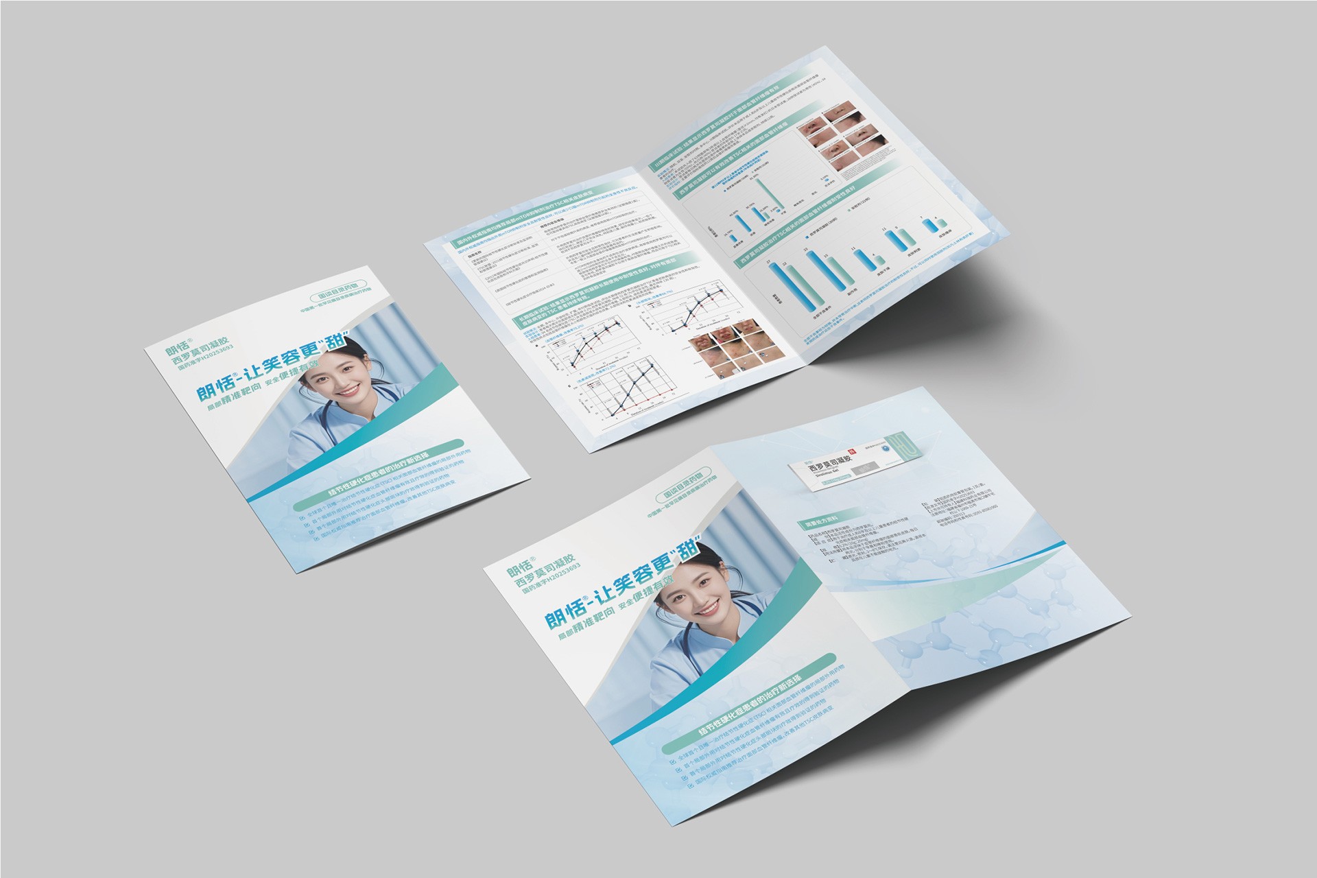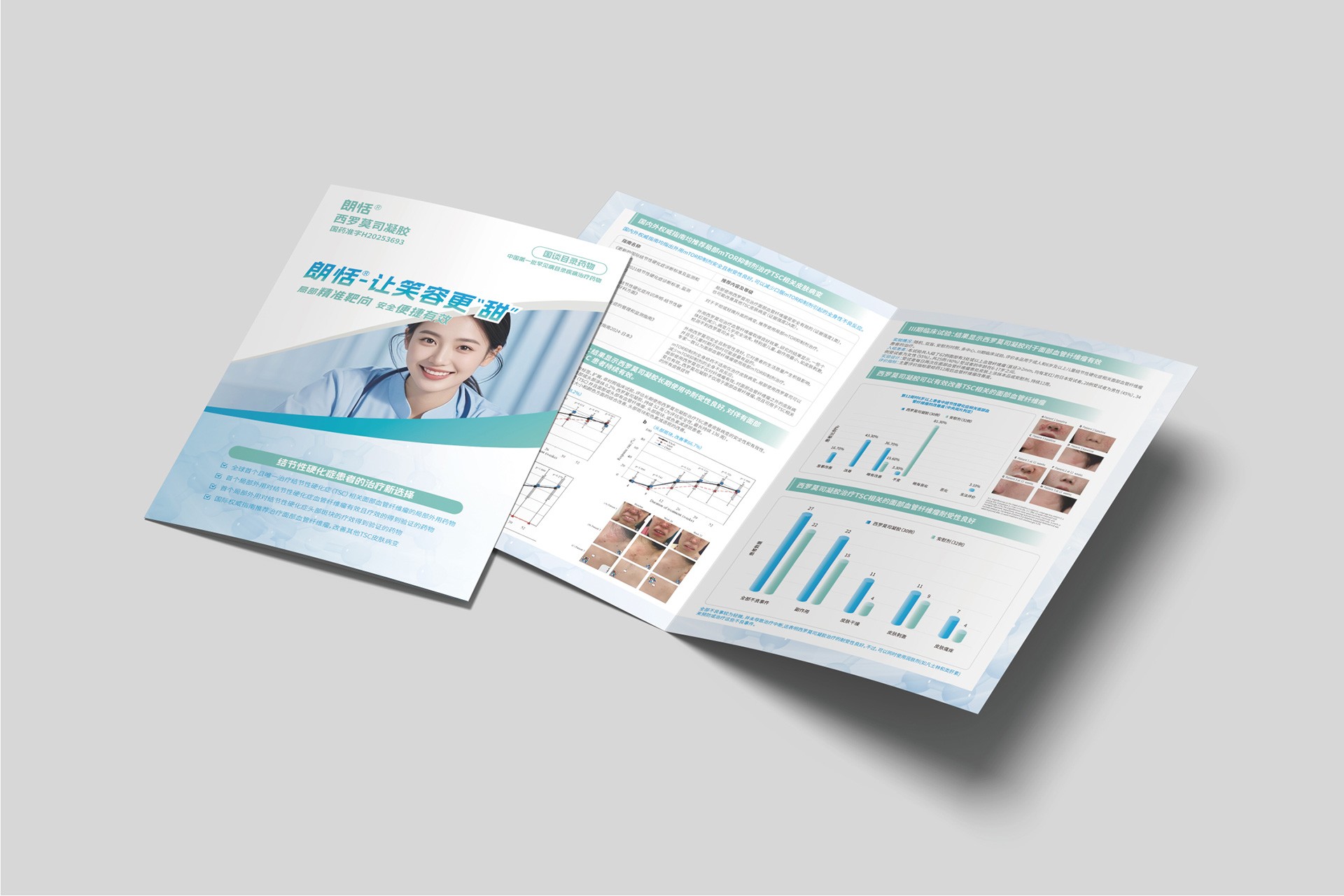 石特大健康受福建瑞科藥業委托,為其郎恬?西羅莫司凝膠產品設計了專業的DA(Detail Aid)折頁。DA是醫藥領域重要的學術推廣工具,用于向醫療專業人士清晰、準確地傳遞產品核心信息。本項目旨在通過精準的視覺表達和結構化的信息設計,突出郎恬?產品的臨床優勢和專業形象,支持其市場推廣和醫學溝通。