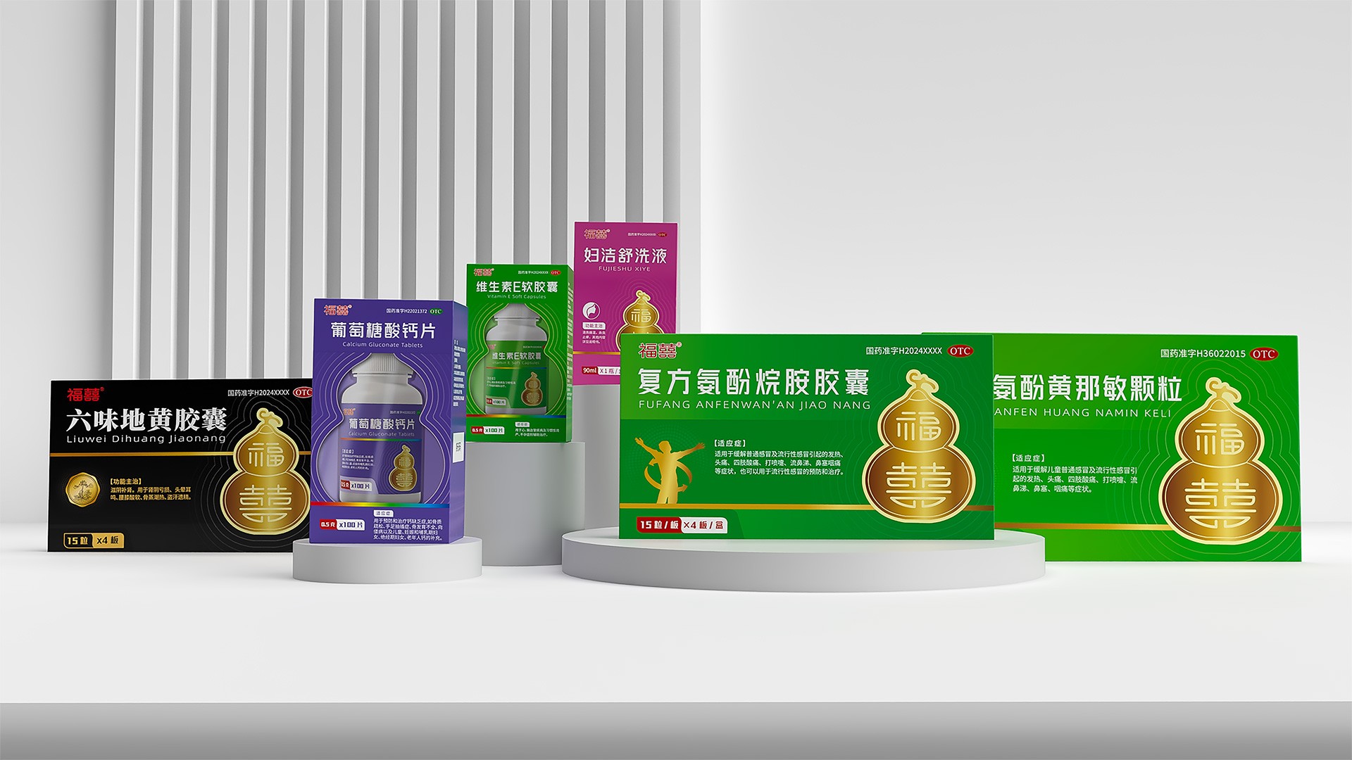 本項目是石特大健康為江蘇福囍醫藥科技有限公司提供的品牌視覺體系落地應用案例。在前期為其完成從“福囍”LOGO到“葫蘆”超級符號,再到整套品牌VI系統的構建后,我們進一步將這一全新的品牌基因,深度應用于其旗下六味地黃膠囊、維生素E軟膠囊、葡萄糖酸鈣片、小兒氨酚黃那敏顆粒、婦潔舒洗液等涵蓋不同品類、不同劑型的核心產品包裝上。我們的目標是將統一的品牌戰略轉化為觸手可及的市場競爭力,確保每一款產品在貨架上都能清晰傳遞“福囍”品牌的溫暖、吉祥與專業感,實現品牌形象與產品銷量的同步提升。