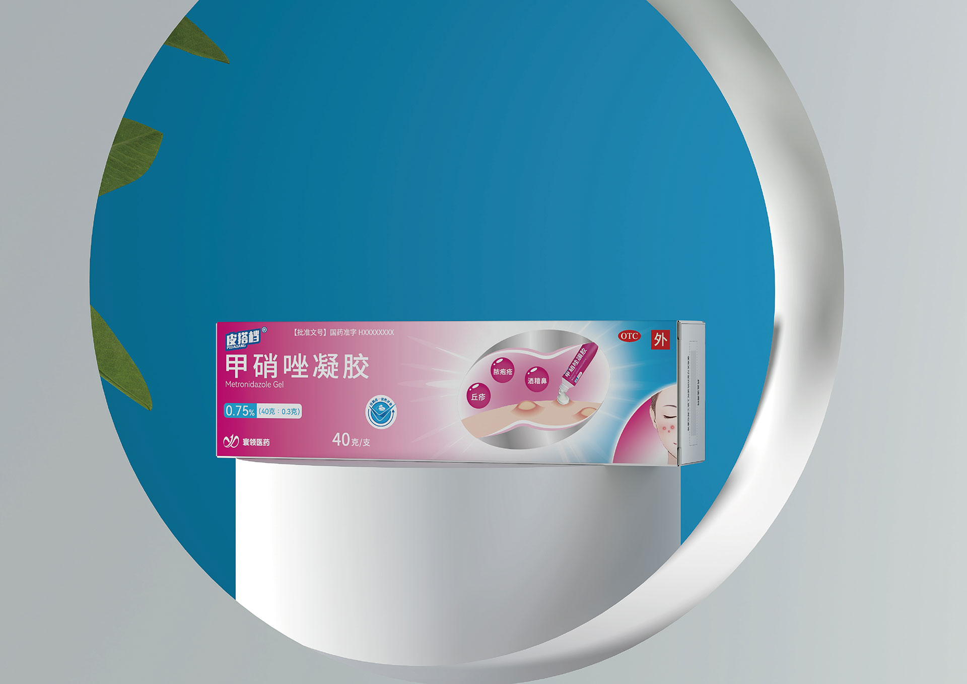 甲硝唑凝膠小盒:尺寸145×25×40mm,推薦燙銀工藝,銀色光澤呼應“科技藍”,提升專業(yè)精致感。
