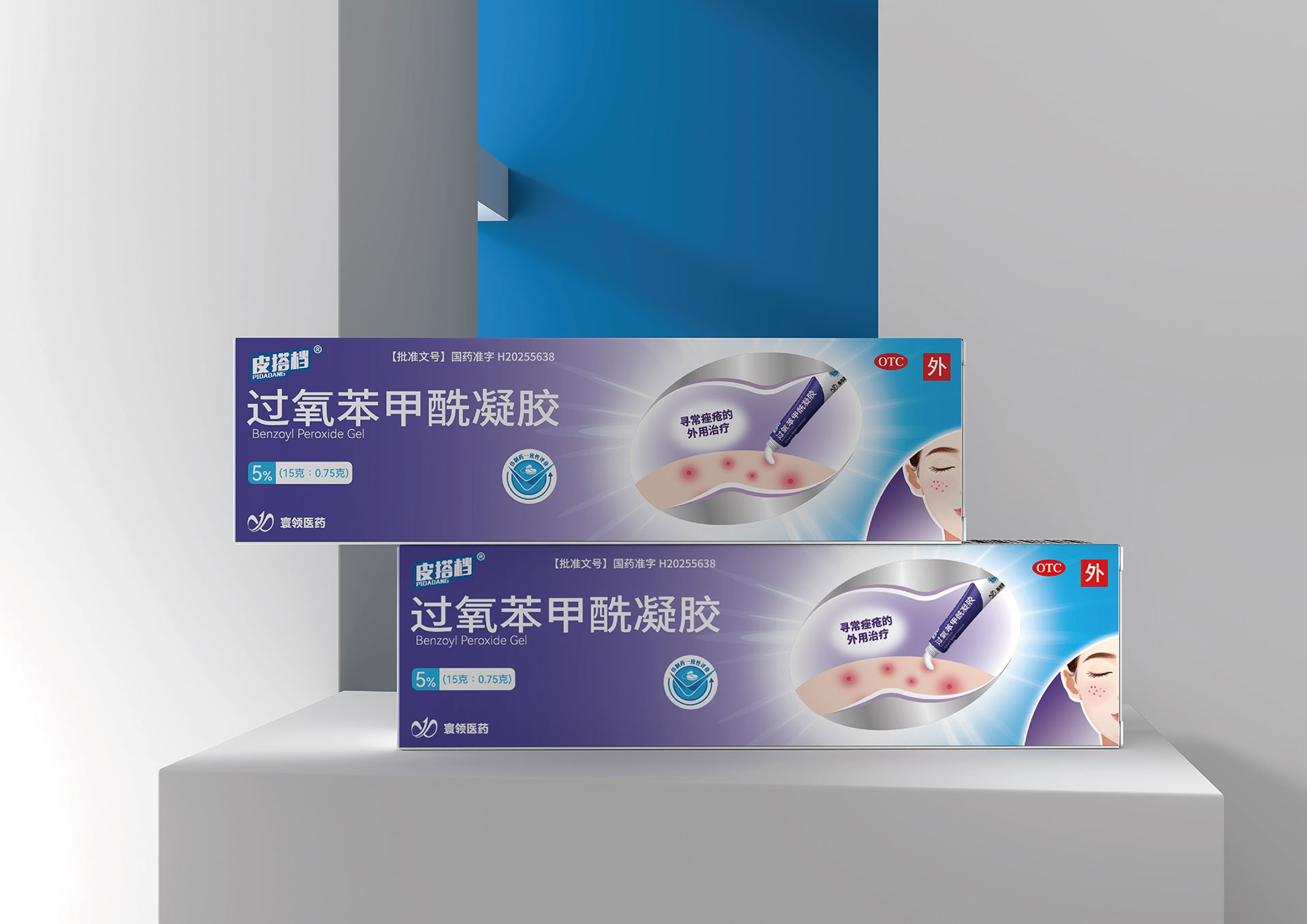 過氧苯甲酰凝膠系列:以警示黃為主識別色,強調(diào)強效殺菌的功能特性。